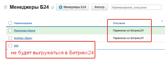 С помощью иконок обновления/добавления можно обновить название элемента в Битрикс24 или добавить новый элемент.