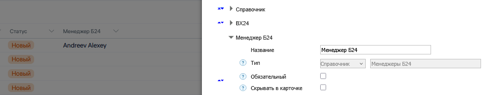 Сохраните, если требуется остальные настройки. На данном шаге не требуется указания поля для Битрикс24.