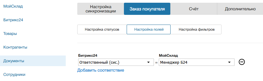 В данном разделе Вы узнаете как можно настроить соответствие полей для обмена между Битрикс24 и МойСклад.