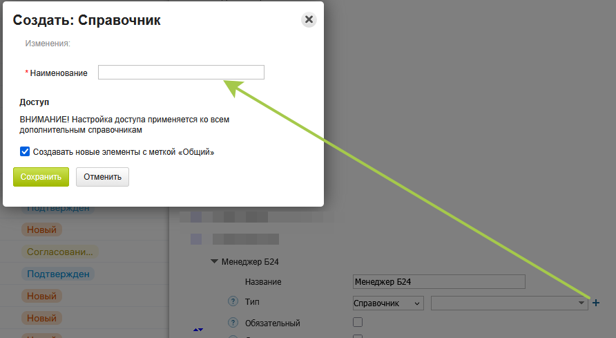 Управление элементами справочника в Битрикс24 осуществляется в специальном разделе настроек приложения.