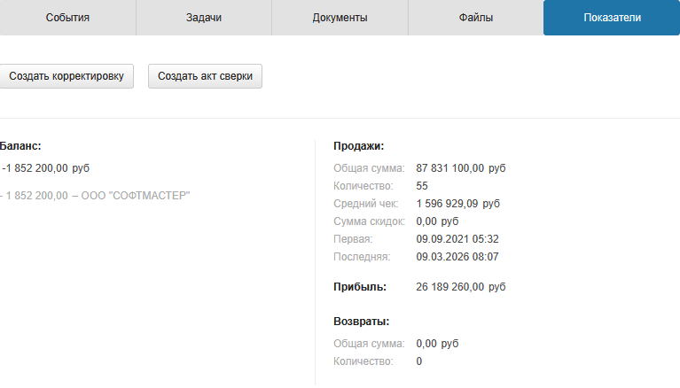 Включить показатели МойСклад в карточку компании (контакта) - выводит в режиме онлайн запроса данные из МоегоСклада: финансовые показатели и список документов.