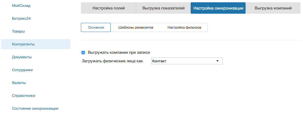 6. Вы можете выгрузите всех имеющихся контрагентов МойСклад в компании Битрикс24.